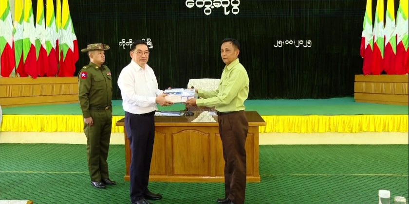 The Prime Minister met with departmental staff from Cocokyun Township at the Township General Administration Department meeting hall, and with township social organizations and community elders at the Township Hall, where he discussed matters related to the regional development.