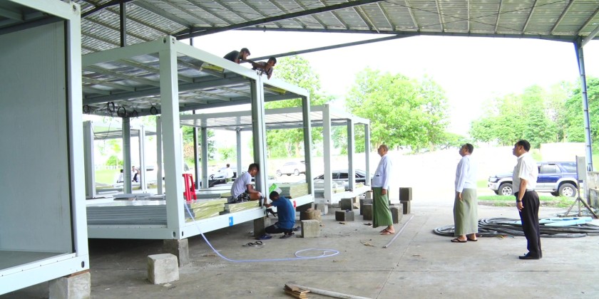 Union Minister for Sport and Youth Affair Jeng Phang Naw Taung inspected the construction of prefabricated offices in Wanna Thakedi Stadium compound, Nay Pyi Taw on Wednesday.