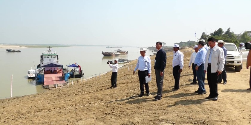 On Saturday, Member of the State Administration Council Deputy Prime Minister and Union Minister for Transport and Communications General Mya Tun Oo, together with officials, visited the project site in Eait Pyet Village-Tract where the construction of retaining wall and dredging works. They later took a vessel tour to oversee the work undertakings.