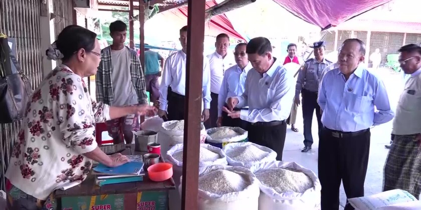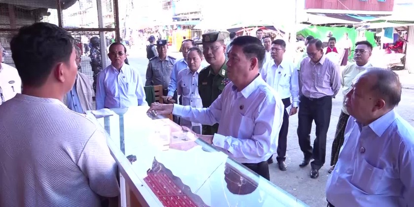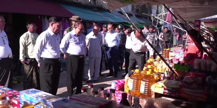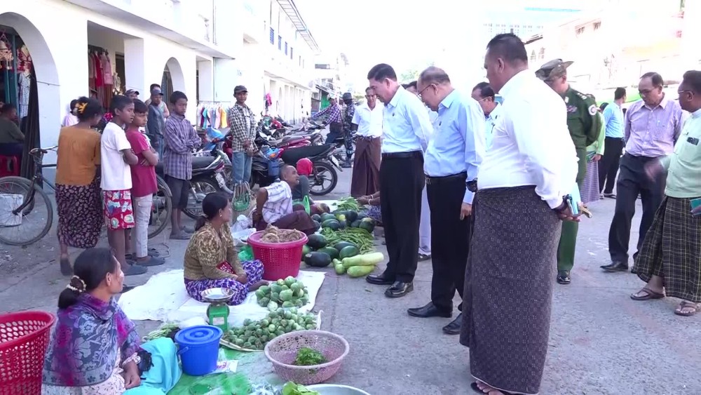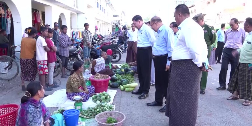 Rakhine State Chief Minister U Htein Lin, along with members of the state government and departmental officials, visited Sittwe Township in the morning on December 5 and made an inspection of market activities at the main municipal market and a review of the arrival of consumer goods at the multipurpose port in Sittwe.