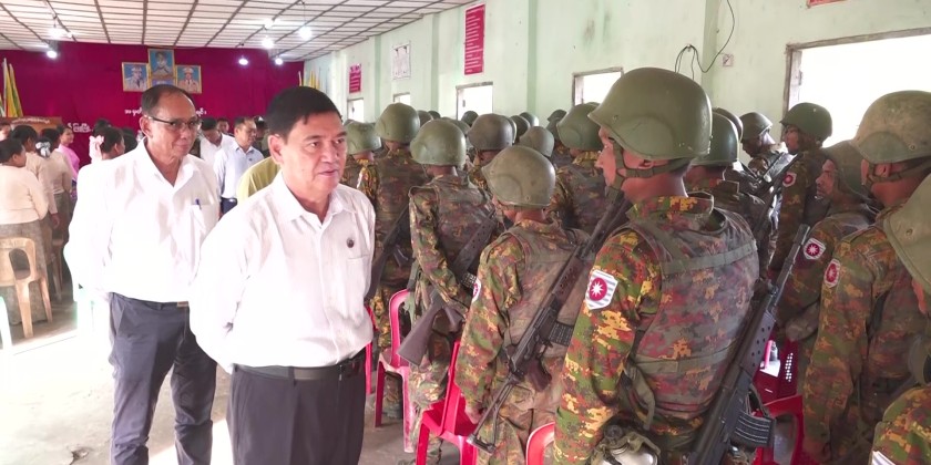 At the monestery, they observed the healthcare services for local residents via mobile clinic conducted by the KyaukPhyu SEZ project. They also inspected the demostration of MEVM and practicing the use of machine held in Ramarwaddy hall and coordinated the needs. Later, the State Chief Minister and party held a meeting with officers, other ranks and families of local battlion and provided food stuff for them.