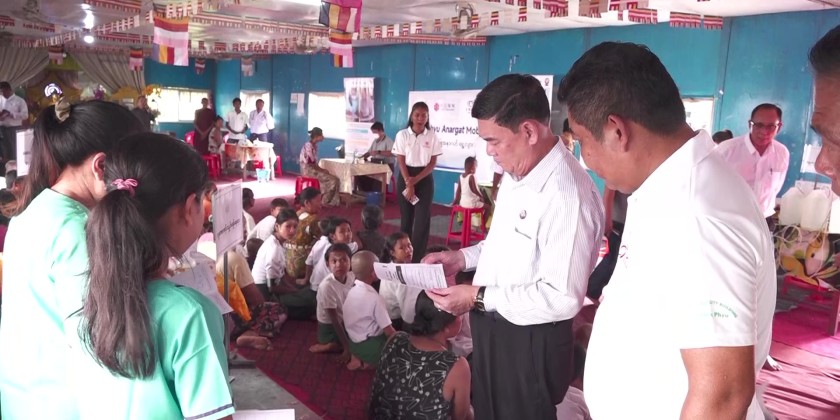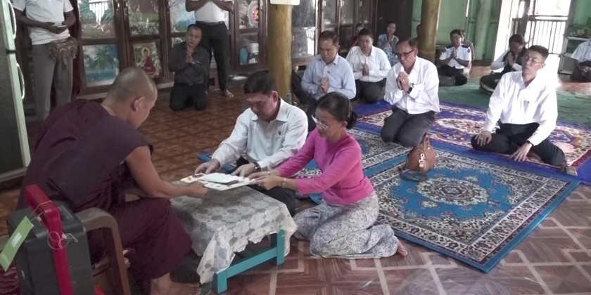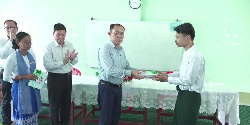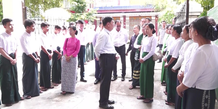 The Chief Minister and party also visited the Agriculture, Livestock and Industry High School where they met with students and provided exercise books. At the Aung Mingalar Monastic School(Post-Primary), they paid homage the Presiding Sayadaw and donated the offertories.