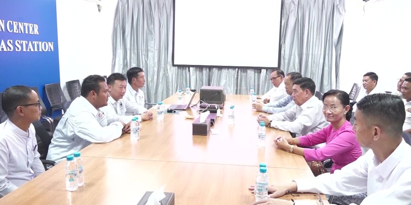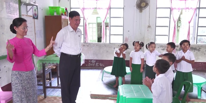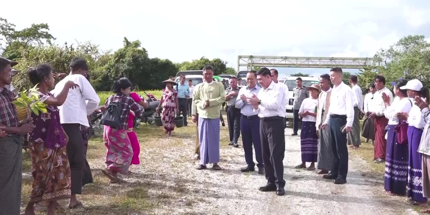 At the brefing hall of KyaukPhyu INITIAL Gas Station company, the Chief Minister heard the status of natural gas distribution, job opportunities for locals and CSR measures reported by officials and inspected the project site. In the afternoon, they visited Basic Education Primary School and Basic Education High School Branch (MyoMa) where they met with teachers, observing the peaceful studying of the students.