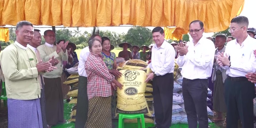 They then viewed the thriving of SinnThweLat paddy field in LawDarPyin village where the Chife Minister made discussion with local residents, to strive for expanding agriculture and livestock sector and using right technique. Next, they provided fertilizers to the farmers.