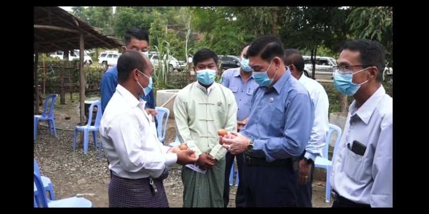 The Rakhine State Chief Minister U Htein Lin together with the State ministers and officials carried out ground implementations for the extension of agriculture and livestock breeding in Taung Goke District in the morning on August 6.