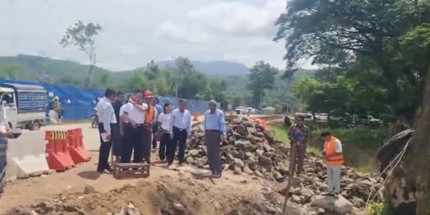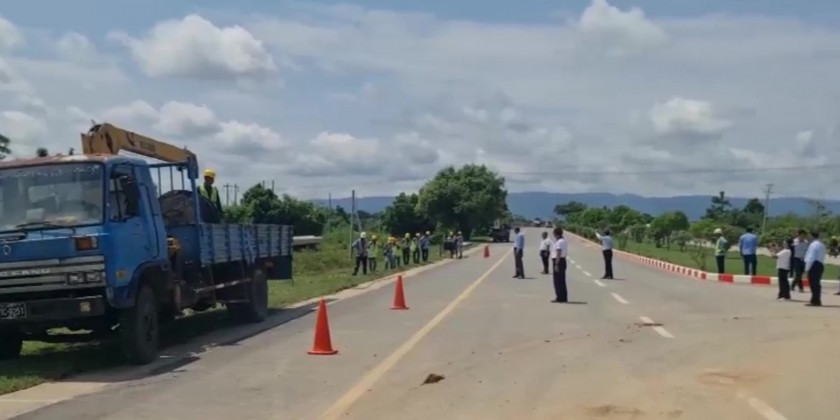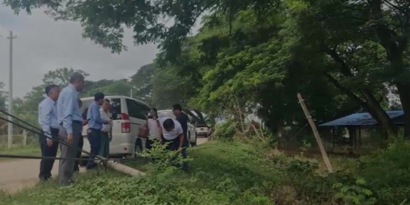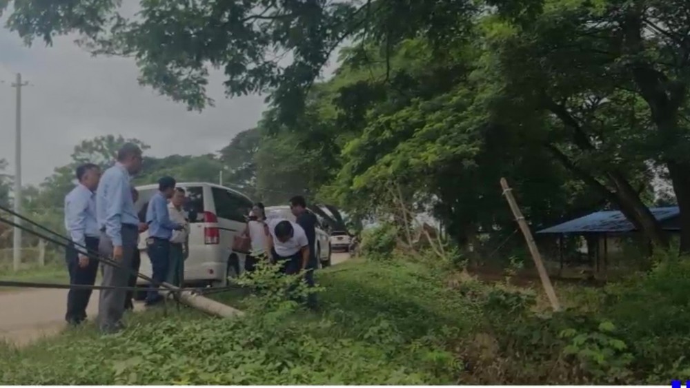 Next, the Deputy Minister and party oversaw the fiber cable connections from Kintha Road to the Tatkone-Pinlaung road and heard update reports on the completion status of the main fiber cable repairs and further work plans. They then proceeded to the bridge at ThaikChaung intersection in Zeyathiri Township to inspect the conditions of the replacement of transmission cables and instructed for a neat and secure installation.