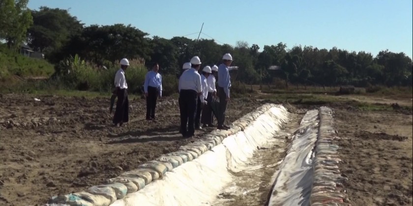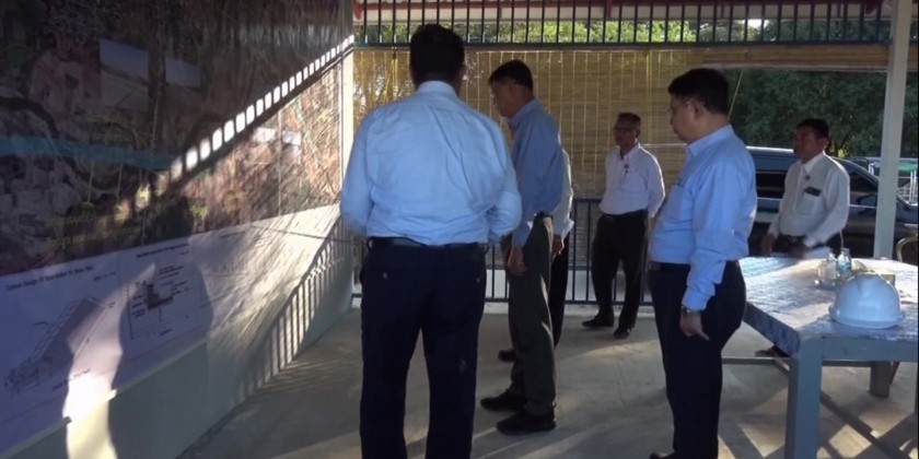 The Union Minister then inspected flood reduction and river improvement works along Sinthay Creek in the Nay Pyi Taw Council Area, including dredging at the Uyin Bridge and Thaik Chaung Bridge waterways, as well as construction of supporting water diversion structures.