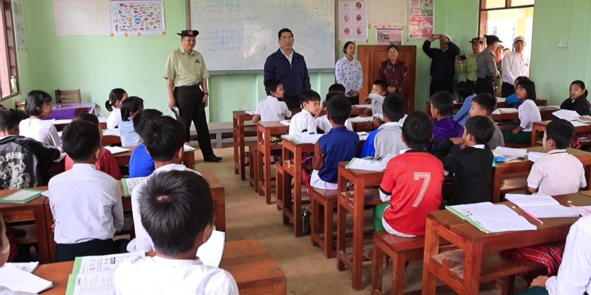 At the high school in Nwalawo  Village, the Chief Minister viewed the teaching conditions and pledged to support with rice, oil, and utilities for teachers and staff. They then inspected the 6-furlong concrete road project connecting three villages, urging completion with quality standards. The Chief Minister also encouraged the greening efforts near the city entrance signboard and Loikaw University campus, encouraging continued beautification.