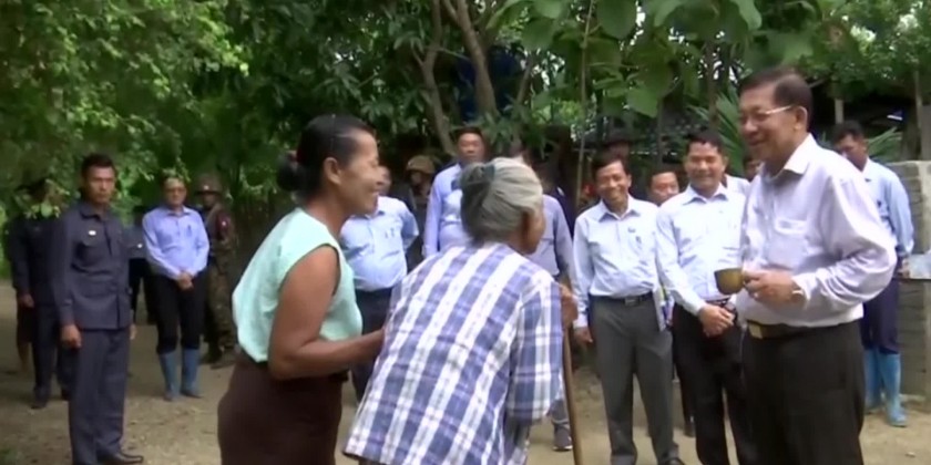 The Prime Minister also warmly greeted the residents of ThoneMai Village and inquired about the flood situation. He also inspected road damage due to the erosion at the KinTha junction and instructed that debris removal and repairs be undertaken promptly.