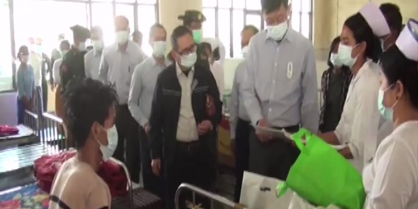 Next, the Deputy Prime Minister and officials visited the district and township-level departmental staff, health workers and education staff at the collective office of Kalay Township and provided supplies and refreshments to the attendees. Finally, the Deputy Prime Minister and party went to the Kalay People's Hospital to comfort the residents receiving medical treatment there and provided nutritious foodstuffs to them.