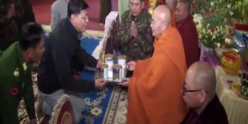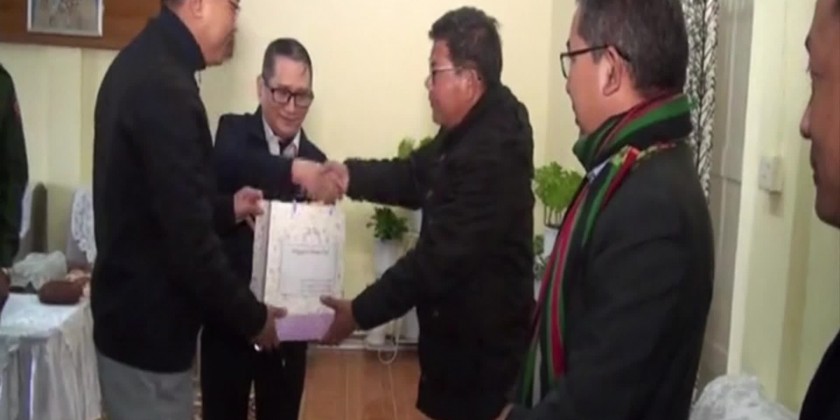 State Administration Council Member Deputy Prime Minister Union Defence Minister General Mya Tun Oo, SAC Member Dr Mhu Htan, Union ministers, the Chin State chief minister, the North-West Command commander, the deputy ministers and officials, who were currently in Haka, Chin State, met religious leaders and town elders of the Haka Township on the morning of 21 February and presented gifts after giving necessary instructions.