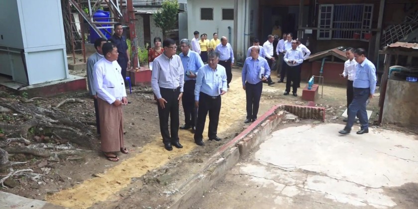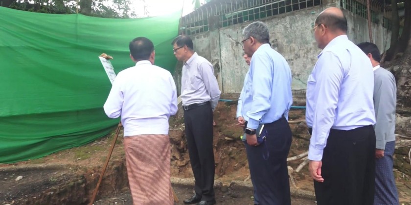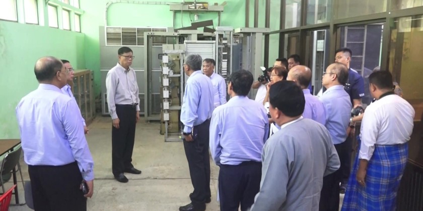 There, they inspected the departmental buildings and land encompassed within the old Hanthawaddy Palace Wall and gave necessary instructions. Next, they visited the Bago Automatic Exchange Office, where they checked the installation of telecommunications equipment at the automatic exchange, mobile station, and microwave station.