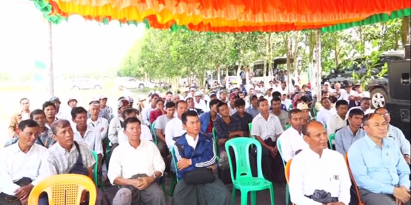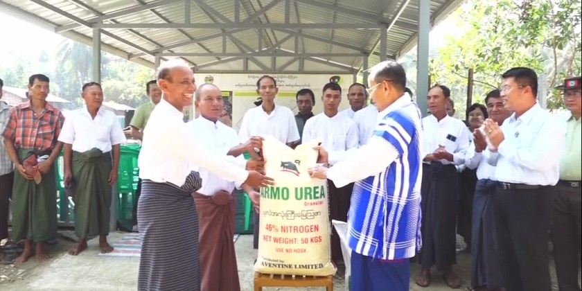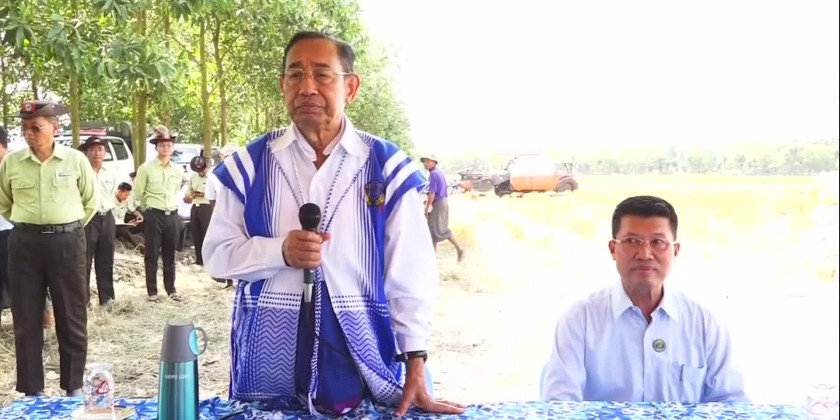 They also inspected broadcasting of a mixtur of chemical and natural fertilizer at the 100 acres pilot mechani zedfarm, and provided fertilizer to the farmers. The SAC member and party laterwent to SipwaChaung Village and observed the harvesting of summer plantation.