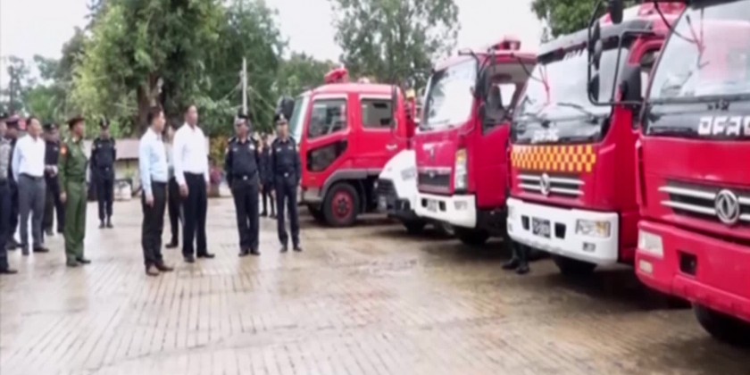 They inspected both completed projects and those under construction. In the afternoon, the SAC member and party attended a ceremony to release fingerlings into NaungYar Lake. A total of 225,000 fingerlings were released into the lake, with an additional 90,000 fingerlings provided to fish breeders from Loikaw and Demawso Townships. They then visited the State Fire Brigade Office, where they viewed fire engines and equipment used in firefighting and rescue operations.