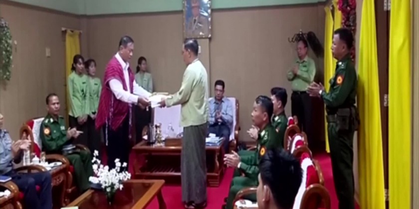 Attendees reported on the progress of regional development initiatives. The SAC member and the Chief Minister also presented cash assistance and food supplies during their visit to a local military hospital, encouraging the hospitalized patients. On the 16th, the SAC member and party visited Min Kyaung Monastery and made donations as offerings.