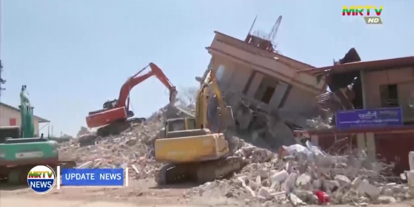 Initially, the Deputy Prime Minister and officials arrived in Aungban Township, where they inspected the conditions of damaged buildings and ongoing rescue operations utilizing heavy machinery. They also received reports from a member of Myanmar Engineering Council and rescue teams on what further assistance would be needed.