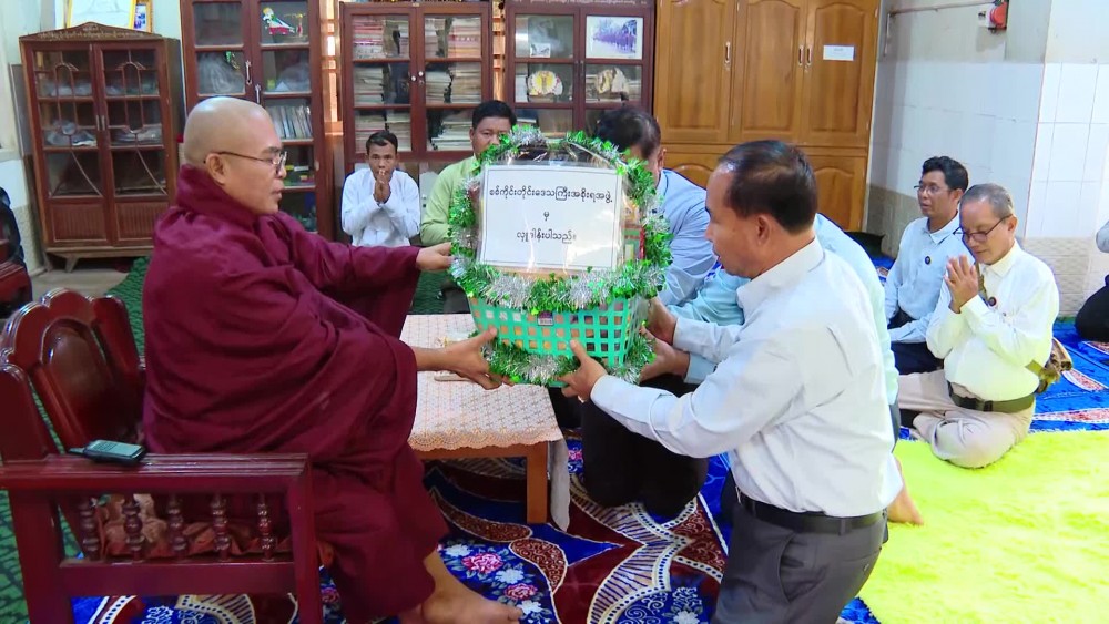 On 2nd October, Sagaing Region Chief Minister U Myat Kyaw accompanied by concerned officials visited Sasana Jortika Myo Ma Monastery in Homalin Township of Sagaing Region, donated offertories to the presiding Sayadaw and supplicated religious affairs.