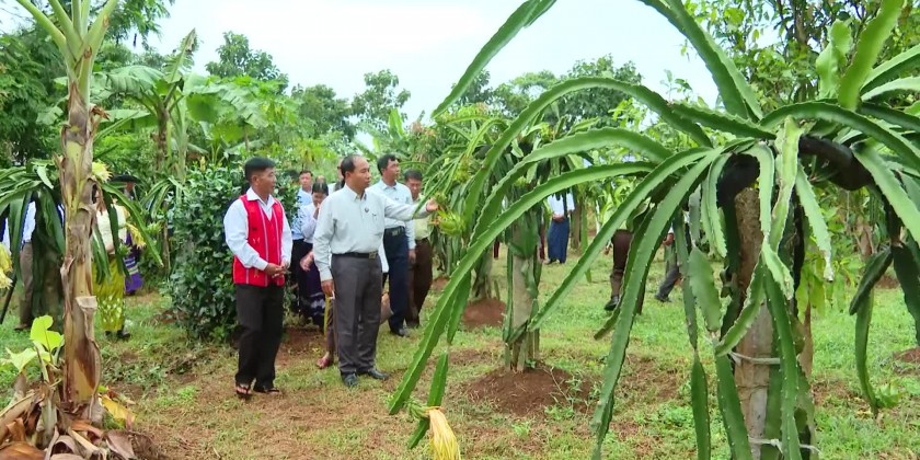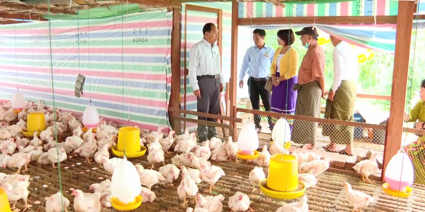 Subsequently, the Chief Minister and party inspected the fruit plantations and poultry farm initiated by State Economic Promotion fund at the Homalin Ward and cooridnated requirements on market penetration and systematic poultry farming to ensure local food sufficiency.