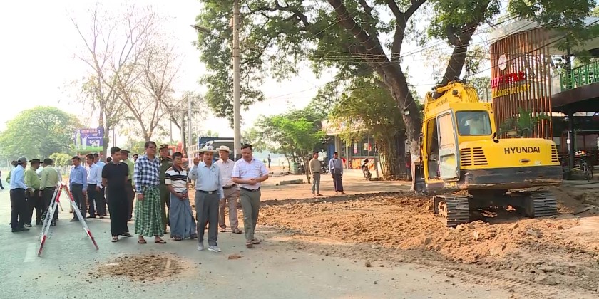 Afterwards, the Region Chief Minister and relevant officials inspected the construction work of a 4-foot-wide brick-lined drainage channel and the concreting and curbing of both sides of the road, stretching 4,200 feet from West Kanhtaya Lake to Monywa Golf Course in Aung Chan Thar Ward along the Monywa-Ye-U Road. They provided necessary guidance and instructions.