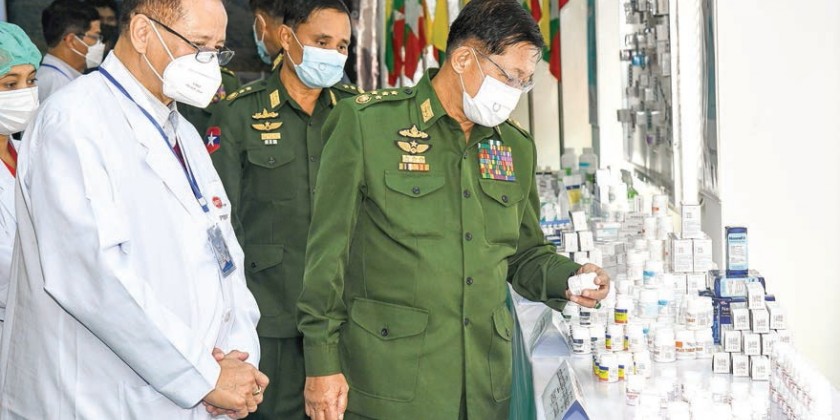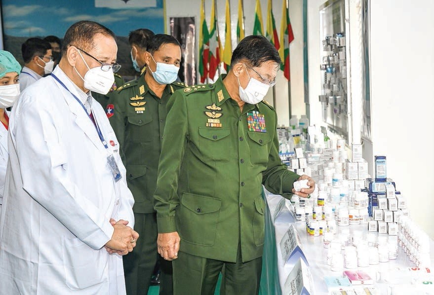 Chairman of the State Administration Council Prime Minister Senior General Min Aung Hlaing inspected the Myanmar Pharmaceutical Factory (Pyin Oo Lwin) leased to RVK Myanmar Co Ltd by the Myanmar Economic Holdings Public Co Ltd in Anisakhan of Pyin Oo Lwin Tuesday morning.