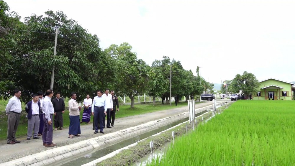 At the arrival of Tar Yaw Agricultural Research Farm under the management of the Department of Agricultural Research (Shwe Nyaung) in Southern Shan State, the Chief Minister viewed around the demonstrations of distributed paddy seed cultivation and paddy plantation with paddy seeders, and the manager of the research farm clarified the working processes.