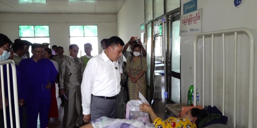 Next, the Chief Minister and party visited Laukkai People’s Hospital, comforted the local people receiving medical treatment at the hospital, provided foodstuff and assistance, viewed around the hospital, provided cash assistance for the personnel serving in the hospital through the hospital medical superintendant.