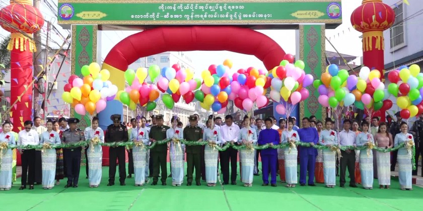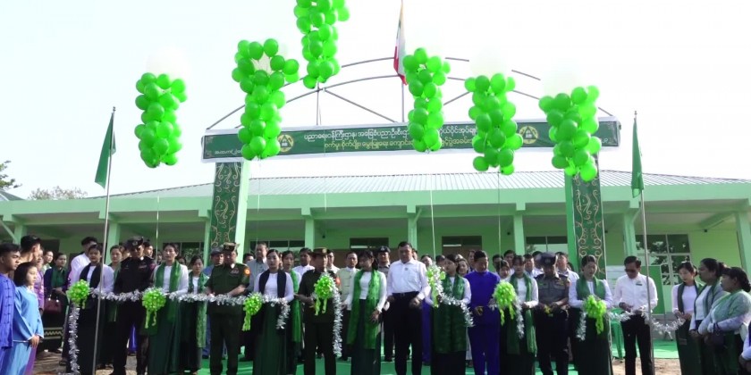 At 7:30 Am on 25th April, Chief Minister U Aung Zaw Aye and party attended the opening ceremony of new school building for Industry, agriculture and livestock breeding attached to the Laukkai Township Basic Education High School (2), opened the school building by cutting the ribbon, sprinkled on the inscription with the scented water. The principal presented opening ceremony commemorative flags to the chief minister and chairman of Kokang Self-Administered Zone Administration Council U Myint Swe. The Chief Minister provided cash assistance for the teachers, staff members and school band.