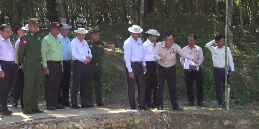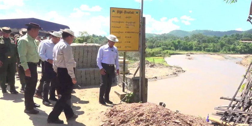 He then inspected the temporary repairs made to the retaining wall near the Mone Laik Bridge on the Mong Phyat-Mong Yawng Road, as well as efforts to restore the water flow of the Namt Pone Stream to its original course to prevent damage to the bridge and gave necessary instructions.