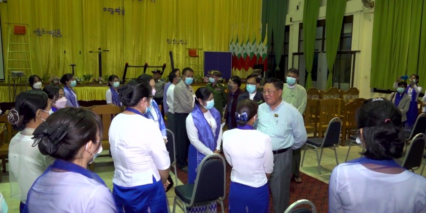 The Chief Minister of Shan State Dr. Kyaw Tun, Deputy Commander of the Triangle Command, State Ministers, Advocate General of the State, Secretary of the State Government and officials met with the teachers at the meeting hall of Computer University in Kengtung, Shan State (East).
