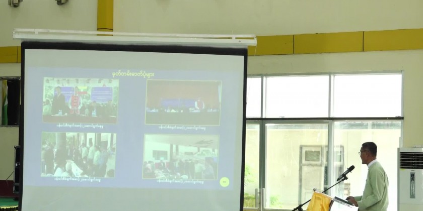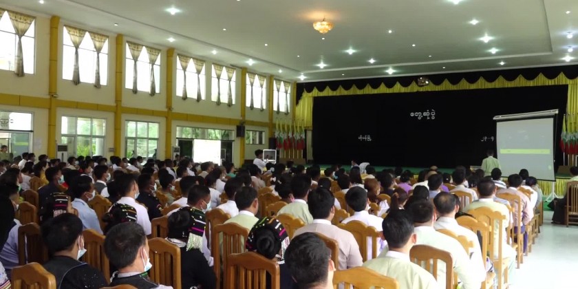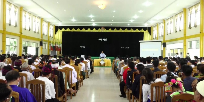 Shan State Chief Minister U Aung Zaw Aye together with the state government ministers, state level departmental officials met with the district and township level departmental officials, township elders and local residents at Wunna Kyaw Htin Sao Khun Hall in Hopan Township of Wa Self-Administered Division at 11 AM on 23rd April.