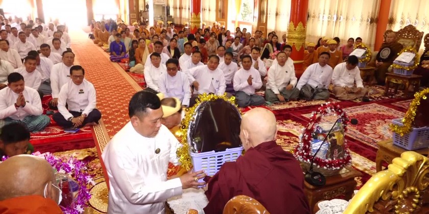 The Chief Minister, Commander and state level officials offered offertories to the Venerable Sayadawgyis, shared the merits gained and the ceremony was concluded. Next, the Chief Minister and party offered day meal to the members of Sangha.