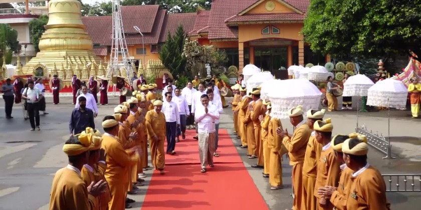 At 9 AM, the Chief Minister and party paid homage to the presiding Sayadaw of Thiri Mingalar Manhsu monastery and offered cash donation.