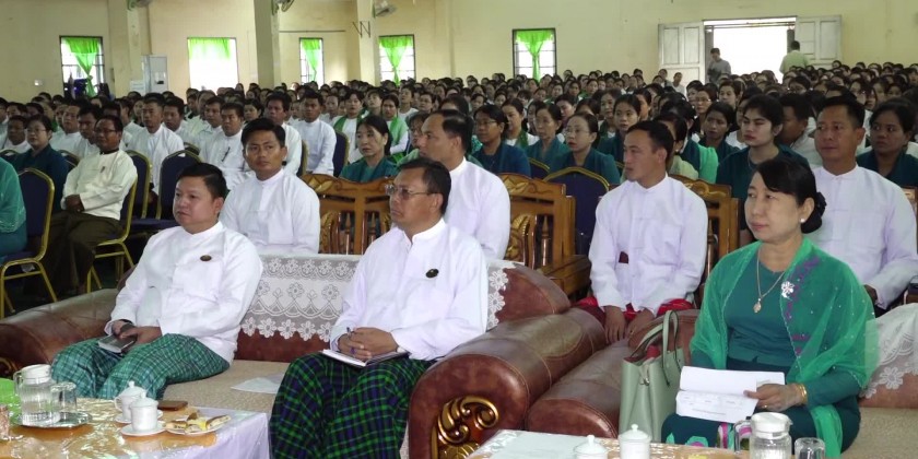 Shan State Chief Minister U Aung Zaw Aye together with the Commander of North-East Command Ma-J Gen. Naing Naing Oo, state ministers and state level officials inspected the teaching and studying of Bachelor Degree of Education course (1/2022) and (1/2023) at Pyinnyar Yadana Hall of Lashio Education Degree College at 8 AM on April. First the chief minister gave a remark, heard the reports of the trainees and instructors, provided cash assistance for the degree courses and the principal of college accepted and expressed words of thanks.Â