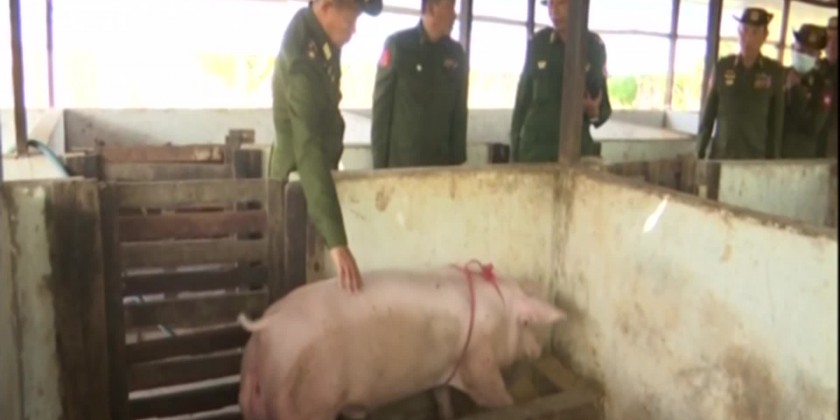 Later, the Vice Senior General and party had lunch together with computer diploma sergeant/clerk female trainees of the training school. Later, the Vice Senior General and party visited agriculture and livestock farms of the training school and looked into breeding of chickens and DYL pigs and cultivation of seasonal crops.