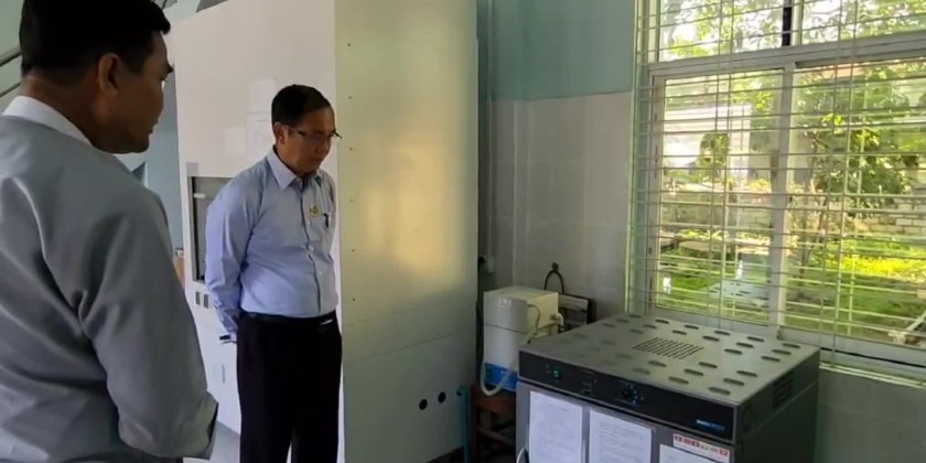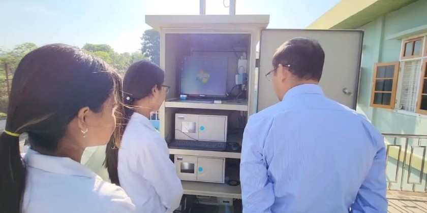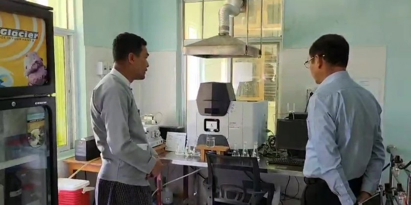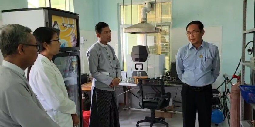 Then, the Union Minister viewed around the implementations of measuring air quality with nephelometers which is installed at the State Environmental Conservation Office and he also inspected the lab experiment of water sample from Inlay lake and water outlet in Taung Gyi, and factories and workshops, measuring of air quality with mobile nephelometers.