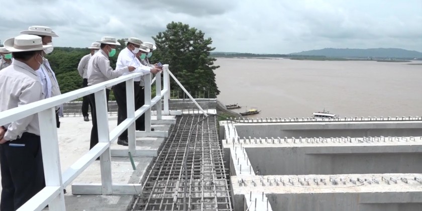 He continued his inspection trip to the Ayeyawaddy Bridge (Thayet-Aunglan) construction site on the Aunglan side, inspected approaching bridge and pillars construction and gave necessary instructions.