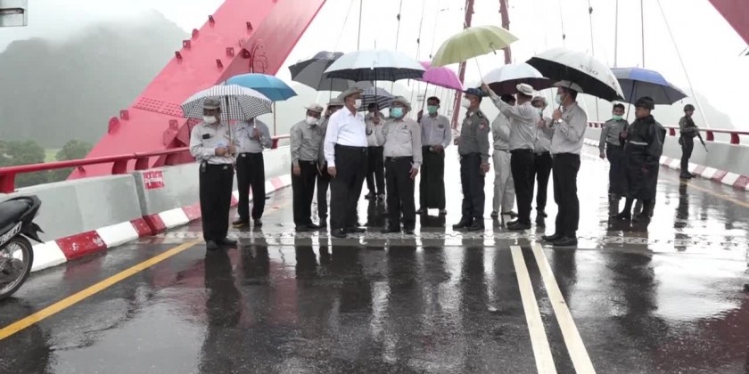 The Union Minister continued his inspection trip to the Attayan Bridge (Sabel Gu) on the Kyaikmaraw-Sabel Gu-Kawtpanaw Road and other bridges and roads condition connecting Mon State with Kayin State.