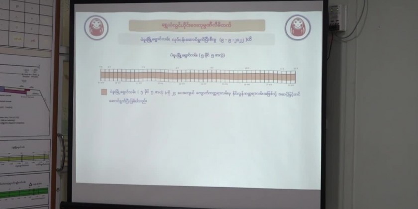 At the briefing hall, the Union Minister heard reports on the Bago-Nyaunglaybin Road, Bayagyi-Kyaikhto Road, Kyaikhto-Thaton-Mawlamyaing Road and Thaton-Myaingkalay Road by an official from the Shwe Than Lwin Highway Company under the Build–operate–transfer (B.O.T) system.
