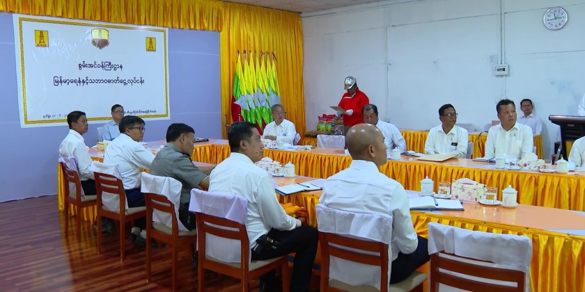 First, the Union Minister met with officials and staff at the briefing hall of Pyay oil field and heard reports on oil production. In his response, the Union Minister stressed the importance of workplace safety, proper use of machinery, safety and fire incident prevention. After the meeting, the Union Minister provided nutritious foods for the staff.