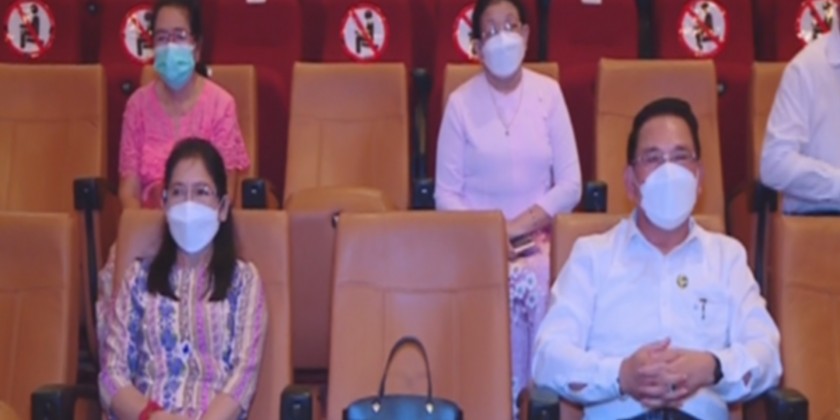 Union Minister for Information U Maung Maung Ohn and officials inspected the construction of the MRTV Diamond Jubilee Museum in Tatkon of Nay Pyi Taw and enjoyed the shooting of Inzali Anyeint troupe (a traditional dance performance with comedians) performed by MRTV staff Monday evening.