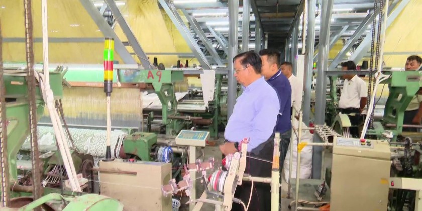 The Union Minister later visited Wun Twin Township and observed traditional handwoven textile work at the Phopyonecho enterprise and encouraged local production efforts.