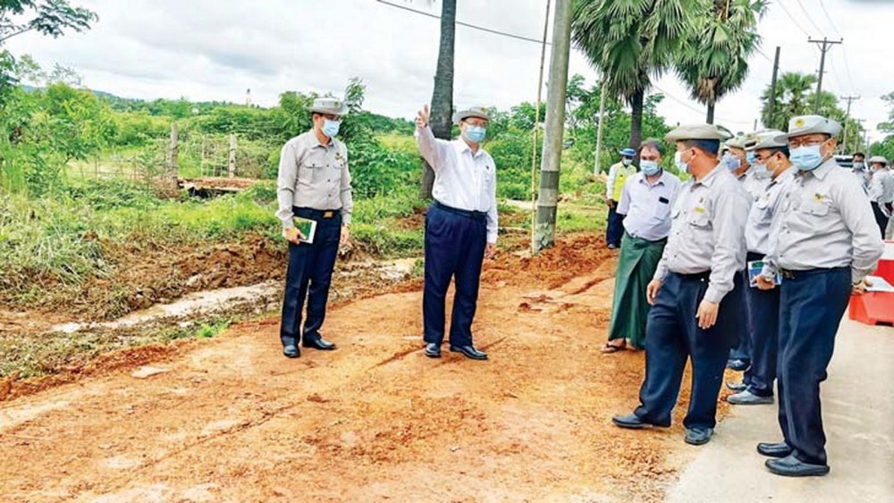 In Bago Region, the Union Minister heard reports on roads construction and urged the concerned officials to make efforts for smooth transportation. Also, he inspected construction of the 210 feet long KyoneKuu Bridge on ThaMeinBaYan-TanTawTwin-MaGaTit Road.