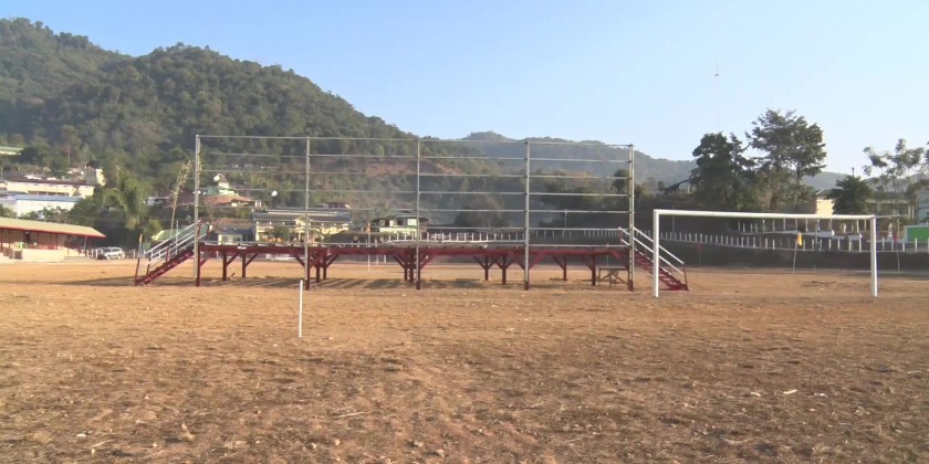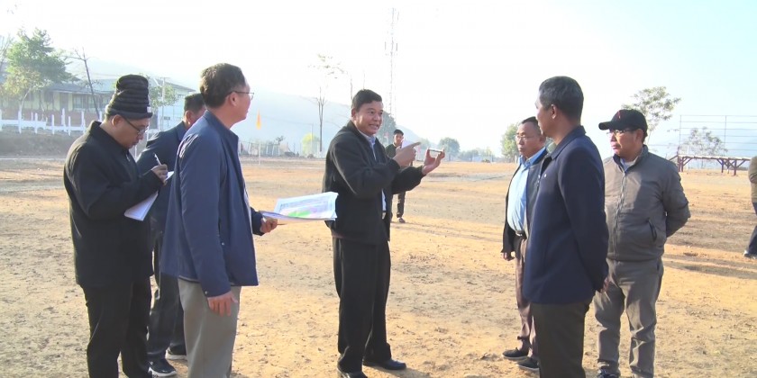 On arrival at Khamti, the Union Minister and party looked into the township gynasium and sports ground and discussed the needs for maintenance of stadium, fencing inter fence and renovation of score boards.