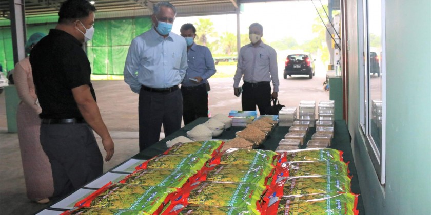 After that, the Union Minister arrived to the MAYLP Agriculture Co., Ltd in Dekkhina Thiri Township, producer of hybrid paddy by contract farming, quality seeds for domestic distribution and upgrading the domestic paddy varieties for local sale, and also investing in milling and rice export business by cultivating the rice varieties which meet the foreign market demand.