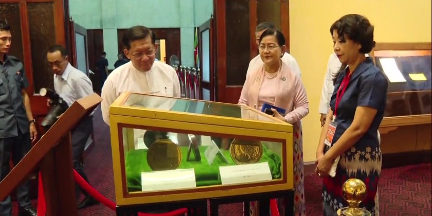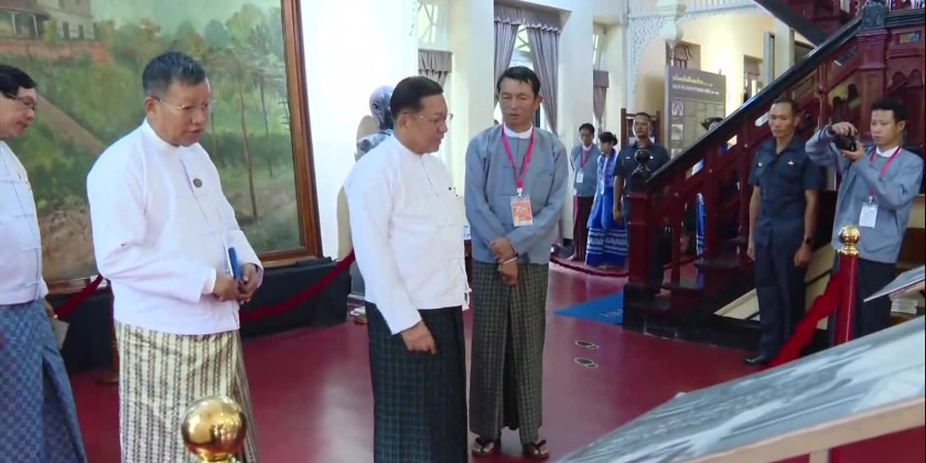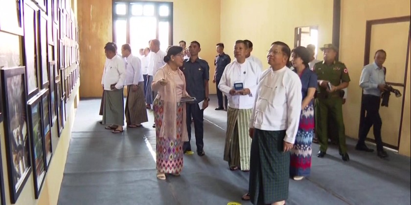 Then, the Prime Minister proceeded to the Minister’s Office (the Secretariat) and inspected displayed documents, photos and Hluttaw hall.