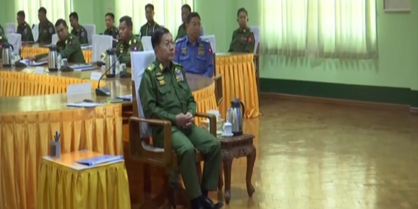 Chairman of the State Administration Council Commander-in-Chief of Defence Services Senior General Min Aung Hlaing together with Commander-in-Chief (Navy) Admiral Moe Aung and Commander-in-Chief (Air) General Tun Aung and senior military officers from the office of the Commander-in-Chief inspected arrangements for military affairs, regional security and Rule of Law of the Western Command on Wednesday.