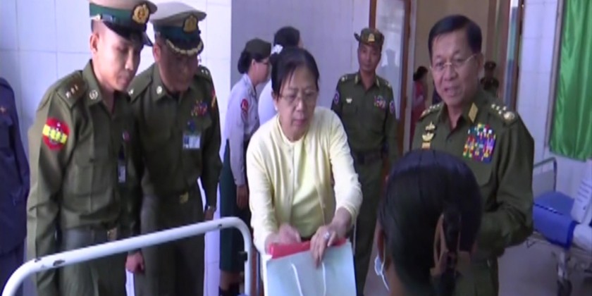 After the meeting, the Senior General and party cordially greeted military personnel and their families and fulfilled their needs. The Senior General and party then proceeded to the Local Military Hospital in Ann and asked about health condition of officers, other ranks and families who are being hospitalized and presented foodstuff to them.