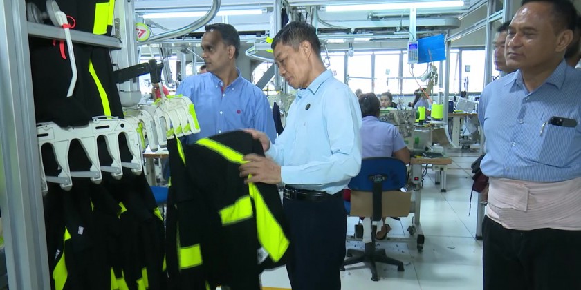 Calling for ensuring worksite safety, the Union Minister oversaw the production process of the factory. They then proceeded to Guston Amava Garment Factory in Free Zone and instructed for increased implementation of Corporate Social Responsibility works. He also urged to produce byproducts locally using the waste items.