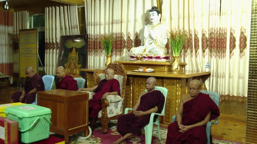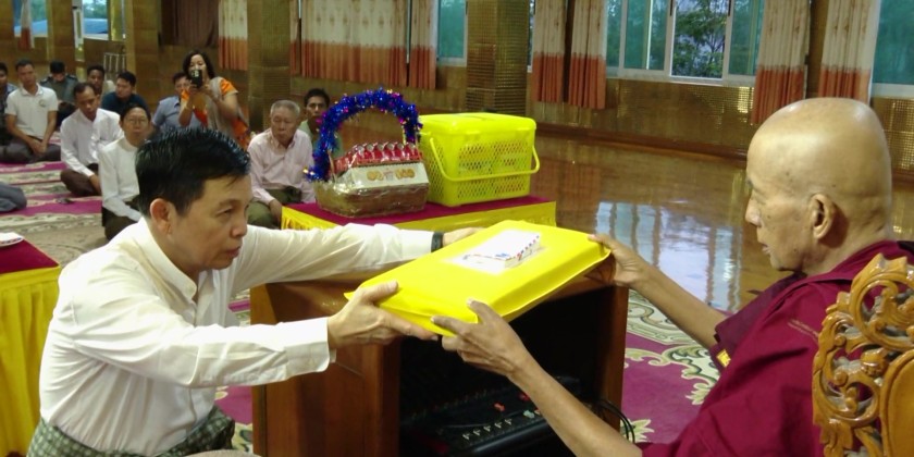 Union Minister for Immigration and Population U Myint Kyaing, along with officials and local elders, visited the Satt Yon Dhamma Yeiktha Monastery in Kyonmangye, Wakema Township, Ayeyarwady Region, on September 3. They paid homage to the presiding Sayadawgyi of State Ovadacariya Abhidhaja Maha Rattha Guru, Bhaddanta Sumana, and members of Sangha. They offered Waso robes and other items.