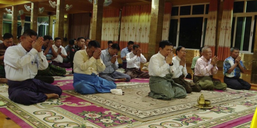 After receiving a sermon from the Sayadawgyi, they shared the merits of their good deeds. Next, the Union Minister and officials offered a dawn-meal to the Sangha and nuns at the monastery, including the 450 people participating in the meditation retreat. They contributed cash donation for the food costs to the monastery's officials.